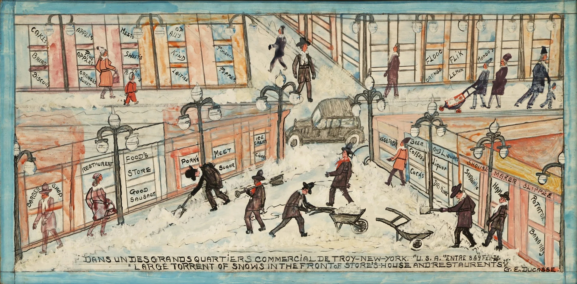 Let it snow, let it snow, let it snow! It is February, and with much of the U.S. experiencing record cold and seemingly endless rounds of snow, it’s the perfect time to draw attention to a painting by Gervais Emmanuel Ducasse. This artwork captures the aftermath of a snowstorm that occurred on February 8 and 9, 1974, in Troy, New York.